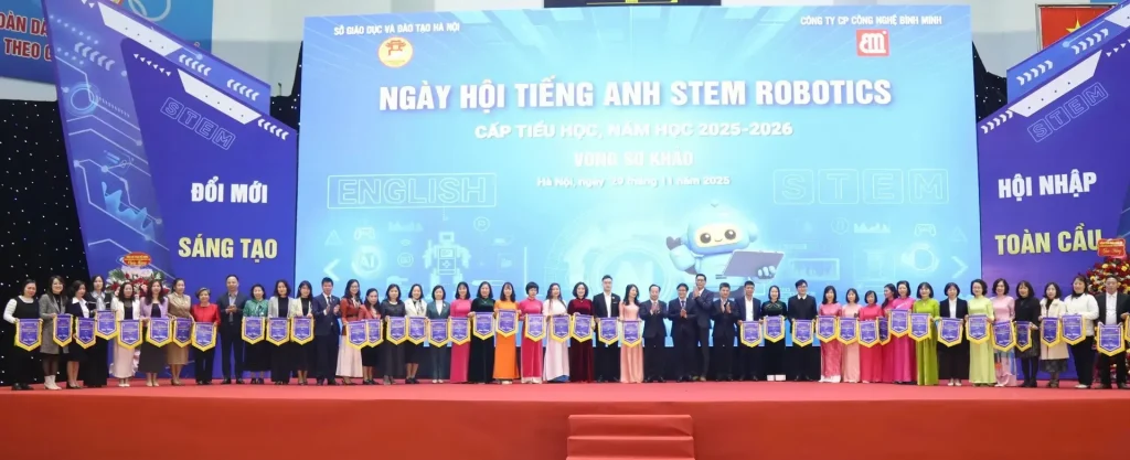 Ngày 29/11 Sở GD&ĐT Hà Nội phối hợp với Công ty Cổ phần Công nghệ Bình Minh tổ chức khai mạc Ngày hội tiếng Anh STEM Robotics cấp tiểu học TP Hà Nội năm học 2025 – 2026.