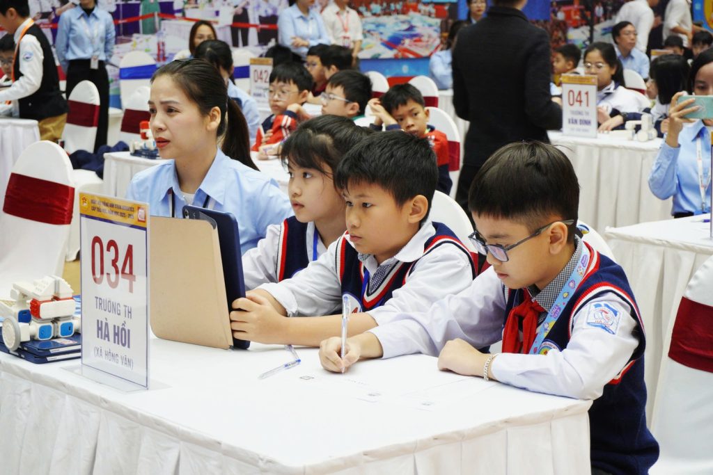Cô Nguyễn Thị Hương Trà – giáo viên Tiếng Anh, Trường Tiểu học Kim Đường (xã Ứng Hoà, thành phố Hà Nội) cũng bày tỏ rằng dù đây là lần đầu các em tham gia sân chơi lớn, phần trả lời câu hỏi bằng tiếng Anh vẫn còn đôi chút bỡ ngỡ. Tuy vậy, khi bước sang phần thi sa bàn, các em thể hiện sự tự tin vượt ngoài kỳ vọng, phối hợp nhịp nhàng và điều khiển robot rất linh hoạt.