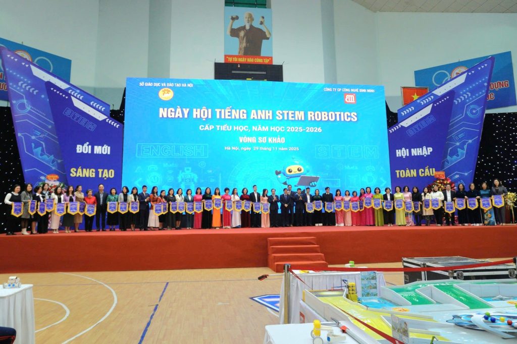 Sáng ngày 29/11, tại Nhà thi đấu Hoàng Mai (phường Tương Mai, thành phố Hà Nội) diễn ra Lễ khai mạc Ngày hội “Tiếng Anh STEM Robotics” cấp tiểu học thành phố Hà Nội năm học 2025 – 2026. Sự kiện do Sở Giáo dục và Đào tạo Hà Nội phối hợp với Công ty Cổ phần Công nghệ Bình Minh tổ chức.