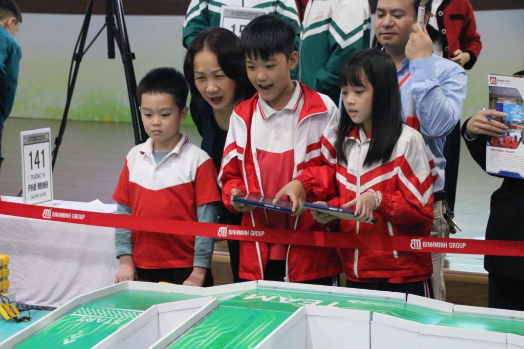 Các đội chơi nhận được thiết bị (Coding, máy tính bảng) từ BTC ngày hội.